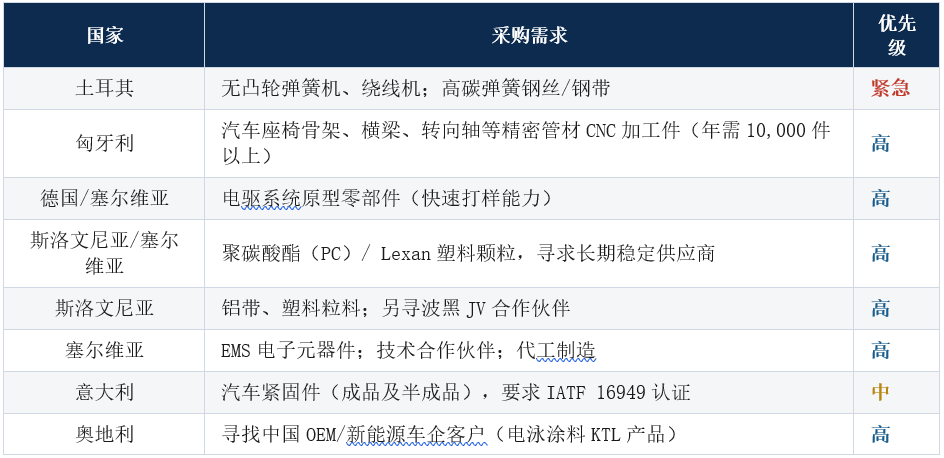 截至发稿日,GNSGO已收集并核实来自塞尔维亚、匈牙利、斯洛文尼亚、土耳其、意大利、奥地利等国多家企业的采购意向,以下为部分已确认的高优先级需求: