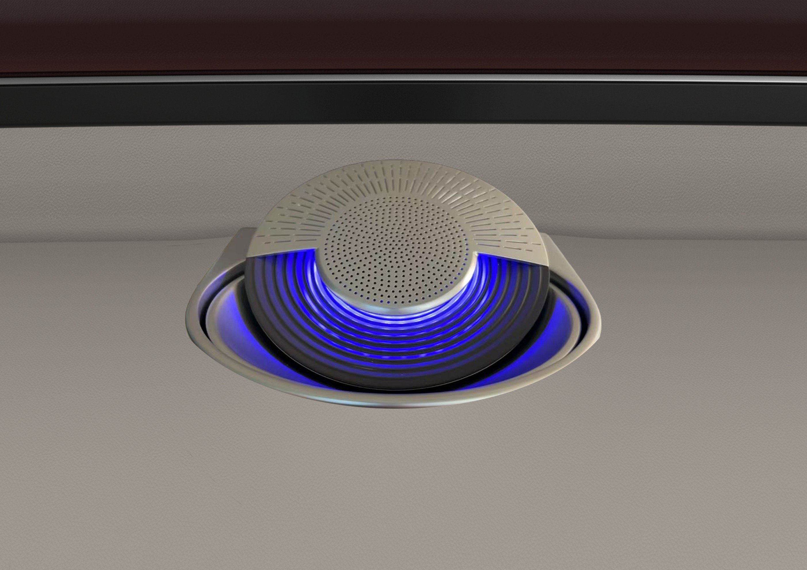 第一套演示装置将座舱区域的特色功能与最新氛围灯技术相结合,为驾驶者和乘客打造更具吸引力、以用户为中心的车内环境。其亮点包括紧凑型电动旋转扬声器(Swivel Motorized Speaker),可让用户按需定向输出声音,带来沉浸式音频体验,同时兼顾高音质、耐久性、造型设计以及与外部音响系统的无缝集成。定制化氛围灯效果可应用于仪表台、门板或中控区域,并可根据用户偏好和驾驶场景调节光效,营造高级座舱氛围。全新电动风口(Motorized Vent)可在降低能耗的同时,为座舱提供更洁净的空气和更优的微气候管理;而隐藏式收纳桌板(Retractable Table)则在不使用时保持座舱整洁与功能性。