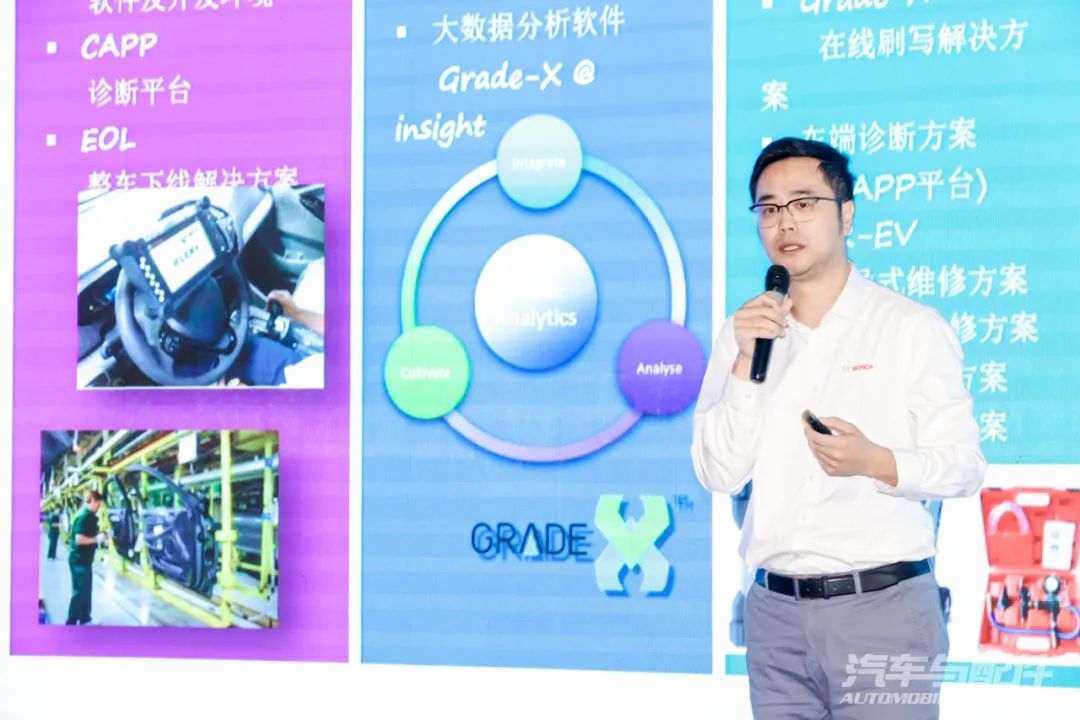 “新四化”浪潮来袭,为企业及零部件企业树立风向标,诸多企业都已开始布局新能源产业。作为零部件领袖企业之一的博世,也早已在该领域运筹帷幄。博世汽车技术服务(中国)有限公司市场总监王嘉杰在峰会现场全面讲解了博世从主机到售后,在新能源汽车领域的产品及解决方案。
