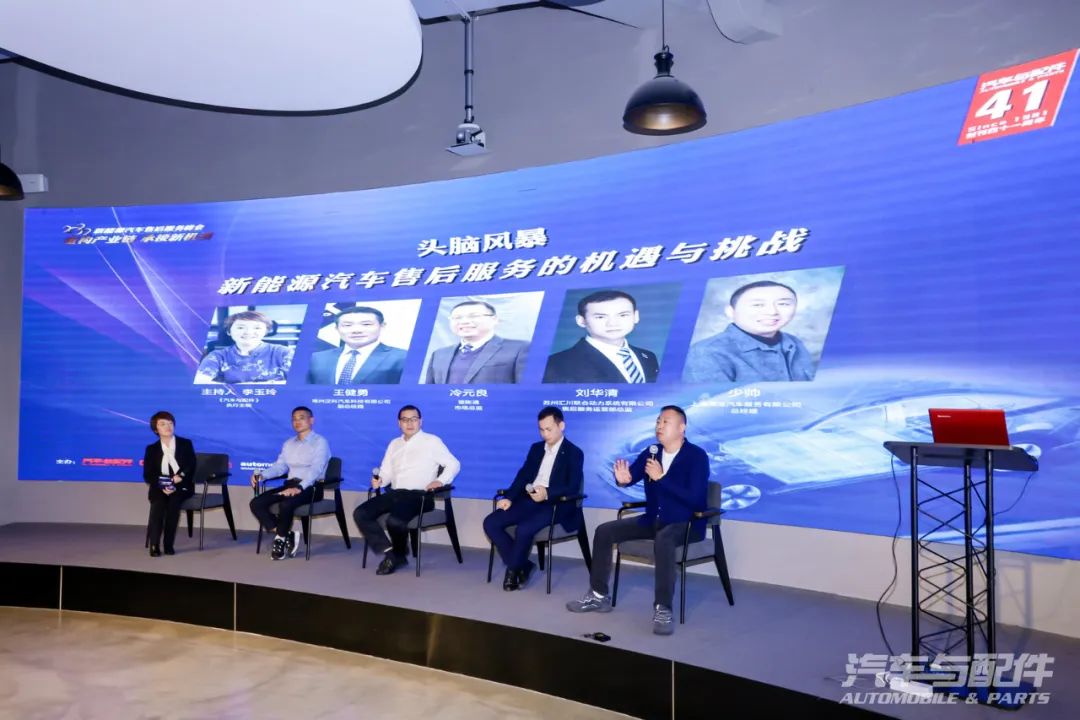 科波拉汽车咨询服务(青岛)有限公司CEO王浩头脑风暴环节,常州汉科汽车科技有限公司副总经理王健勇、壹账通市场总监冷元良、苏州汇川联合动力系统有限公司售后服务运营部总监刘华清、上海海宝汽车服务有限公司总经理少帅,共同探讨了新能源汽车售后服务的机遇与挑战。