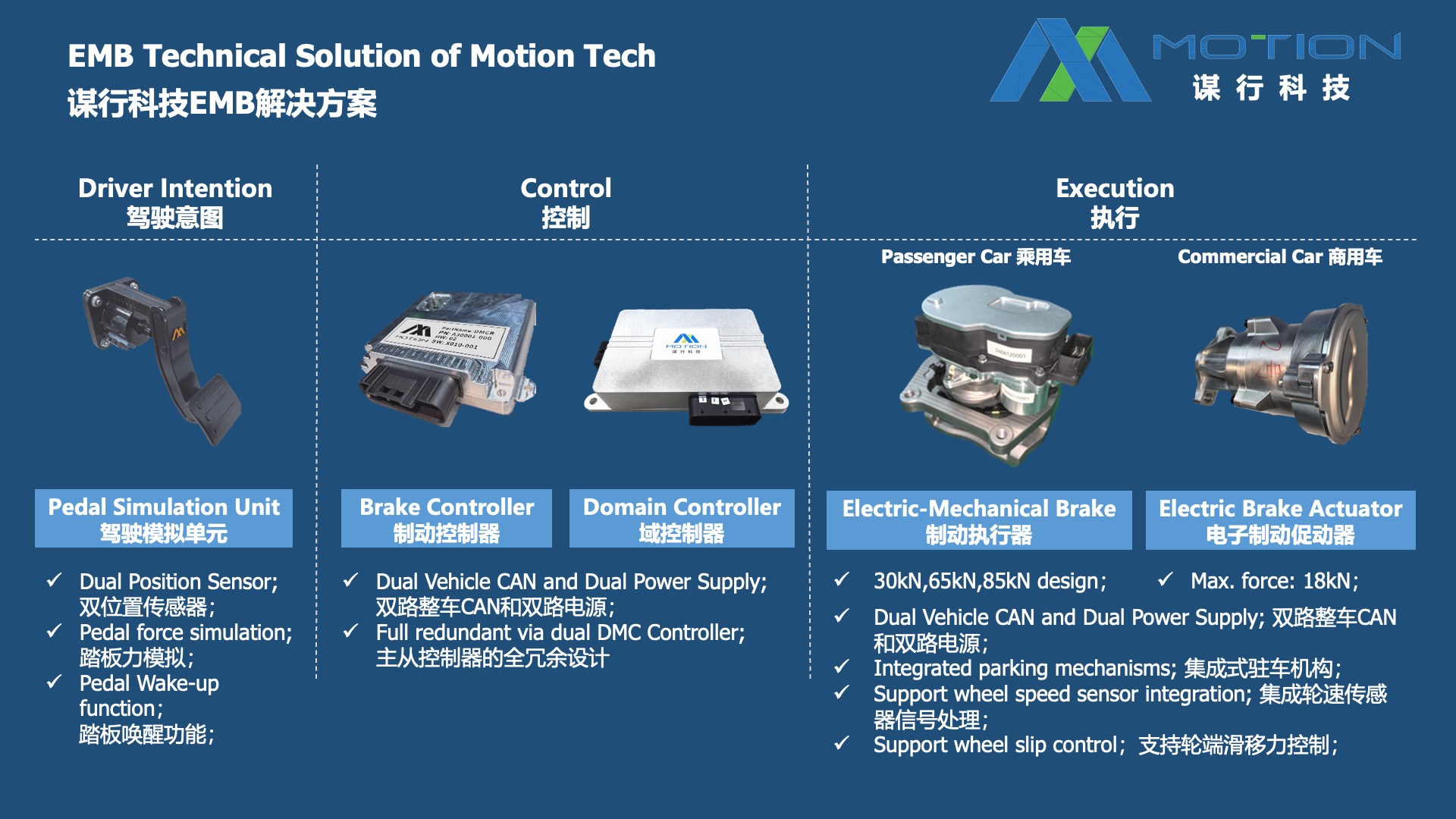 谋行科技董事长朱平在发布会上表示:“经过两年多的深耕,谋行科技迎来了重要里程碑。“我们正式对外发布两款行业领先的智能化产品——乘用车EMB线控制动系统和商用车EMB线控制动系统,我们联合业内顶尖自动化设备供应商打造的国内第一条专业化EMB量产产线也正式启动。”