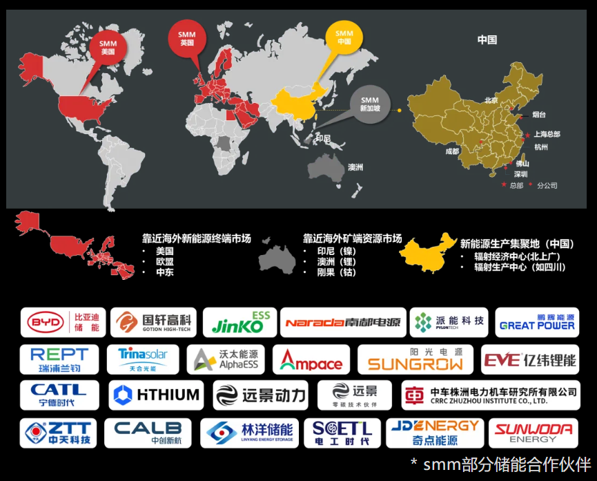 上海有色网信息科技股份有限公司(SMM)是全球知名的有色金属行业综合服务门户,提供包括金属和采矿行业的基准价格、分析、资讯、咨询和会展等服务。在全球有色、黑色和电动汽车金属行业有广泛的客户群体,影响力覆盖工商业储能绝大多数群体。