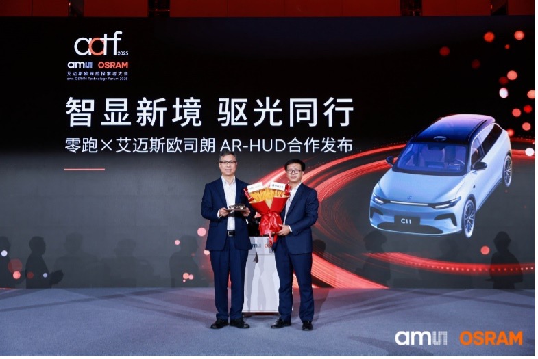 照明与传感创新的全球领导者艾迈斯欧司朗与全域自研自造能力的科技型智能电动汽车企业零跑汽车在2025艾迈斯欧司朗探索者大会(aOTF)上举行“智显新境 驱光同行——艾迈斯欧司朗×零跑AR-HUD合作发布”,并宣布零跑汽车全新C11的 DLP AR-HUD(增强现实抬头显示)搭载了艾迈斯欧司朗高性能OSTAR™ Projection系列RGB LED光源,以超大、高清显示和精准交互等优势为终端用户出行带来更智能、便捷且安全的驾驶体验。